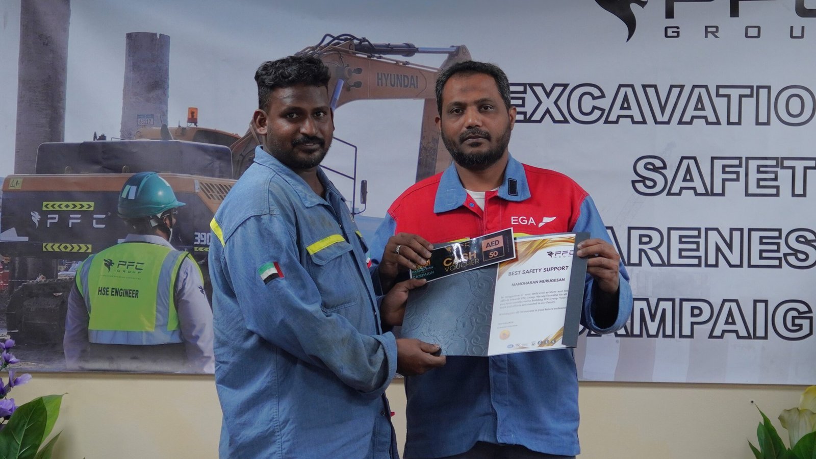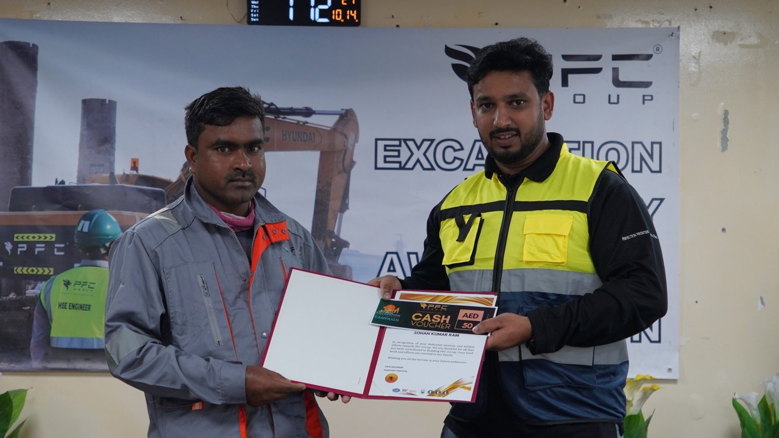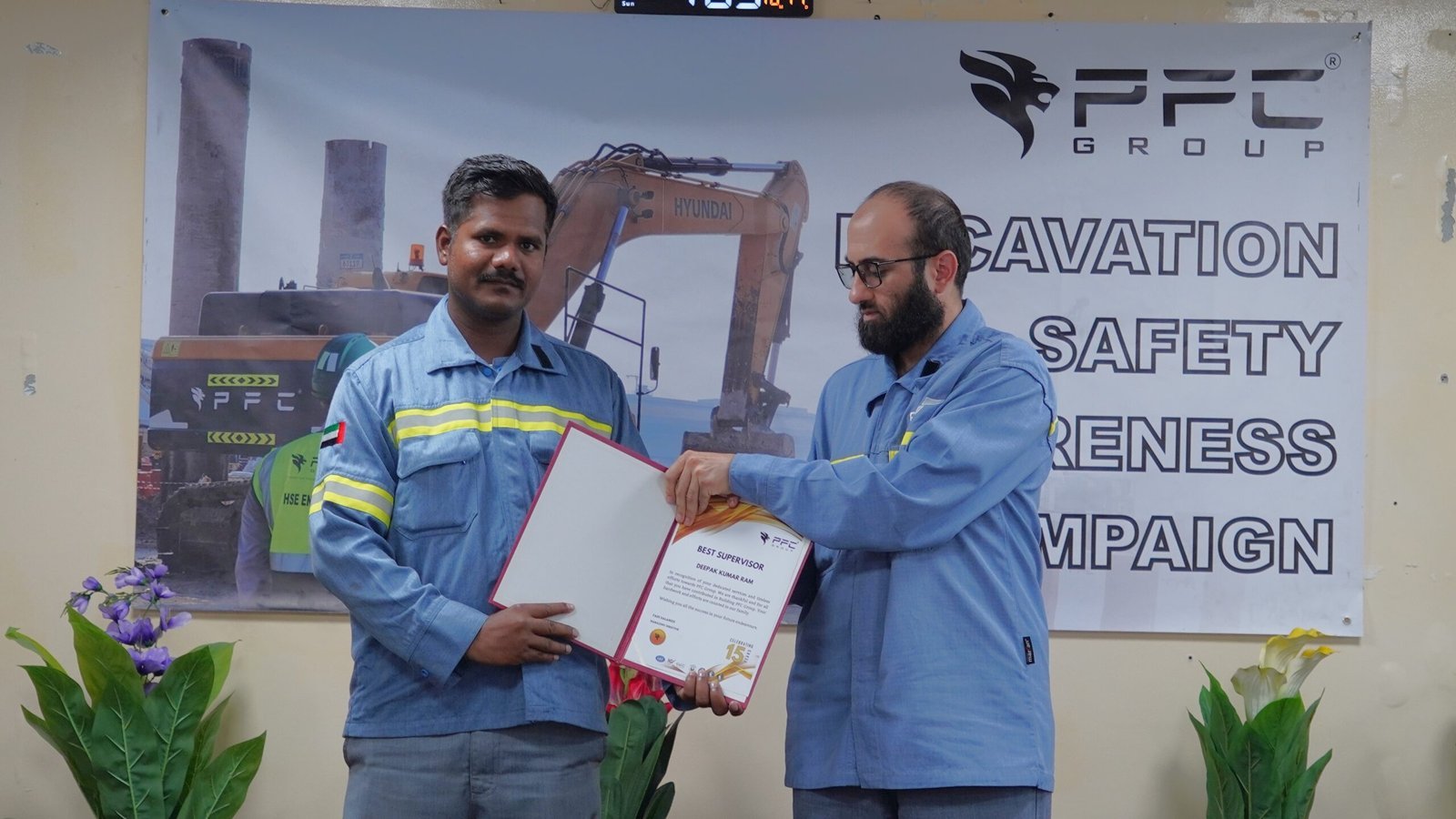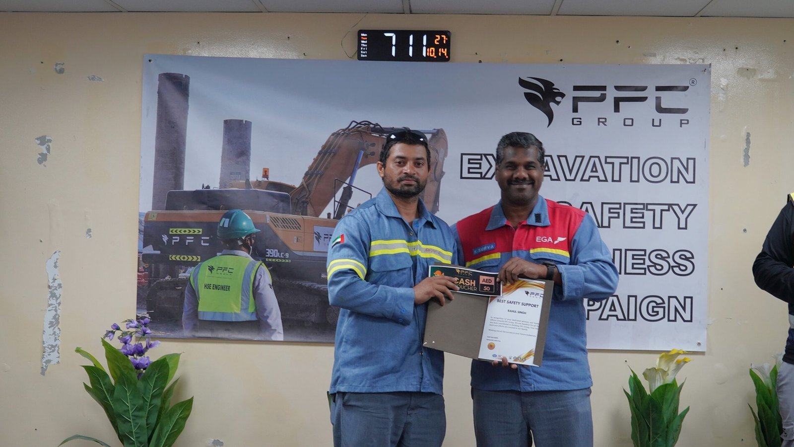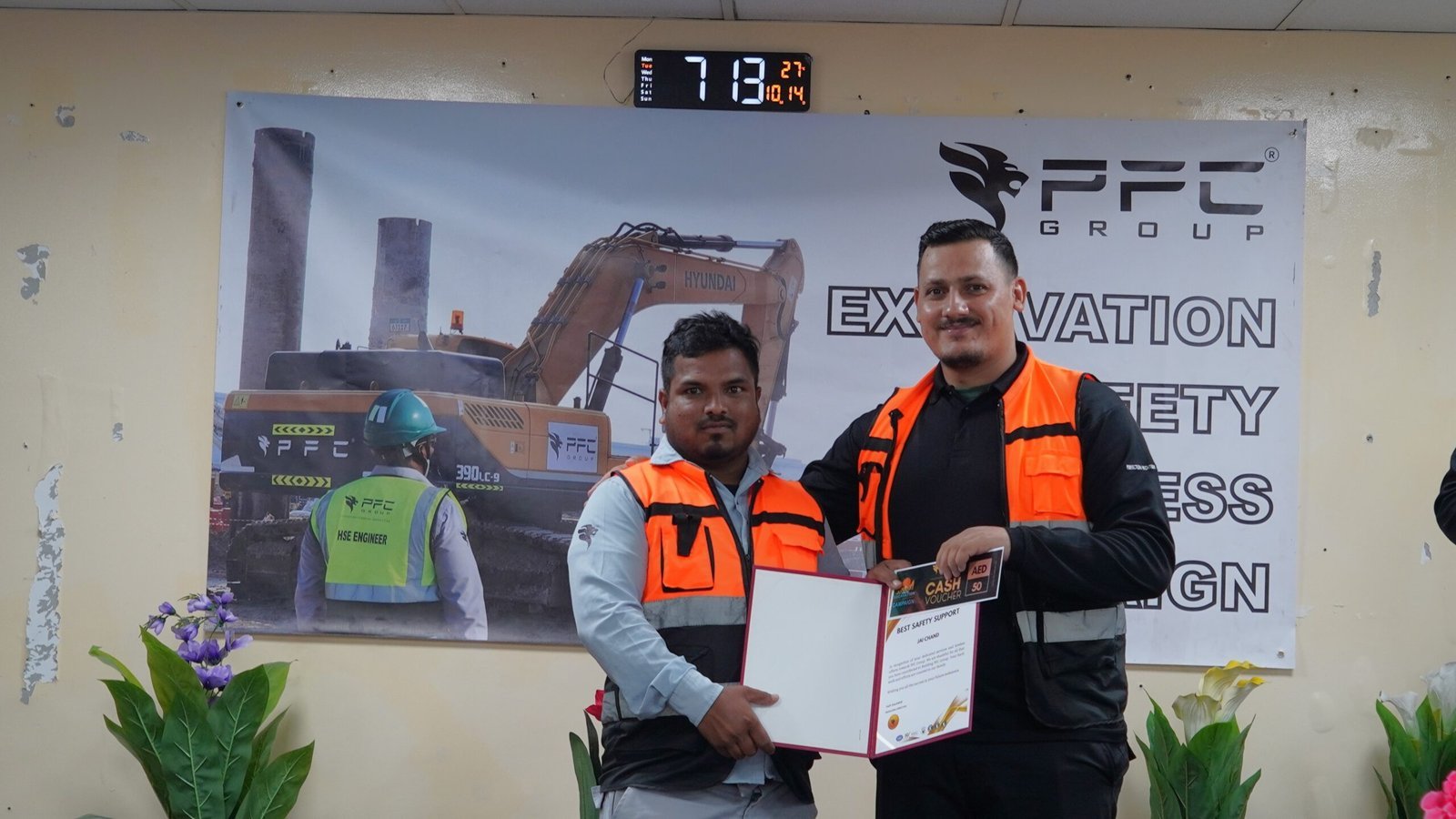 The closing ceremony of the Excavation Safety Awareness Campaign was successfully conducted by the PFC Group HSE Department. The event was graced by client representatives, who addressed the workforce and provided valuable awareness on excavation safety practices and the importance of maintaining safety standards at worksites. As part of the ceremony, awards were distributed to recognize outstanding contributions — including the Best Supervisor and Best Safety Support. Additionally, the drawing competition on the theme “Excavation Safety” concluded with the prize distribution to the winners. The closing day highlighted the success of the week-long campaign in promoting safety culture, teamwork, and active participation among all employees.