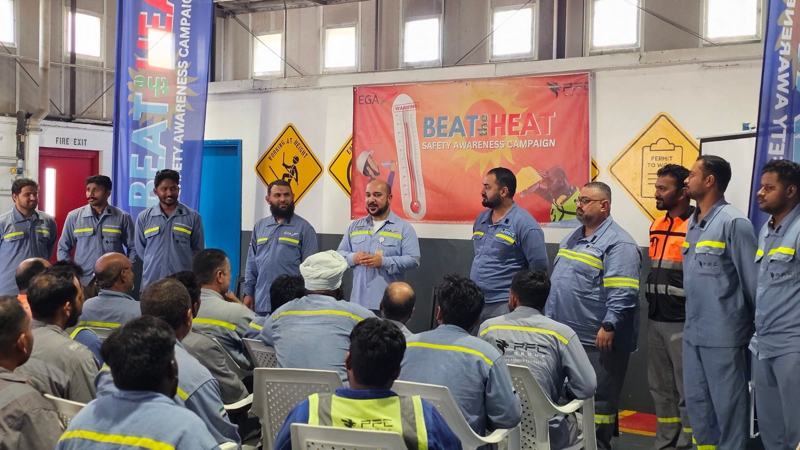 PFC Group recently conducted an impactful awareness campaign titled “Beat the Heat,” aimed at educating the workforce on how to stay safe during the intense summer months. The campaign was inaugurated with an inspiring speech by Mr. Zubair Majeed, HSE Manager at Emirates Global Aluminium (EGA), who emphasized the importance of heat stress prevention, hydration, and safe work practices. Adding to the momentum, Mr. Omar Jalani delivered a motivational talk, encouraging the workforce to stay vigilant, support one another, and adopt smart measures to beat the summer heat. The campaign saw active participation from PFC Group’s engineers and safety teams, who demonstrated their commitment to health and safety through hands-on involvement and engagement with workers. This initiative reflects PFC Group’s continued dedication to safeguarding the well-being of its workforce and promoting a strong safety culture across all operations.