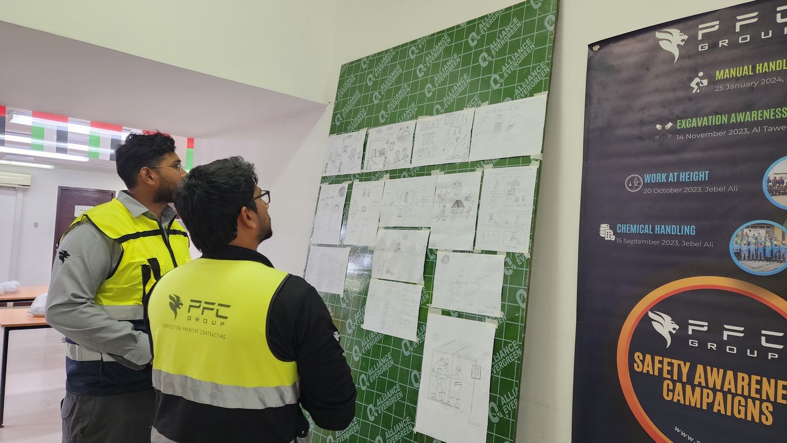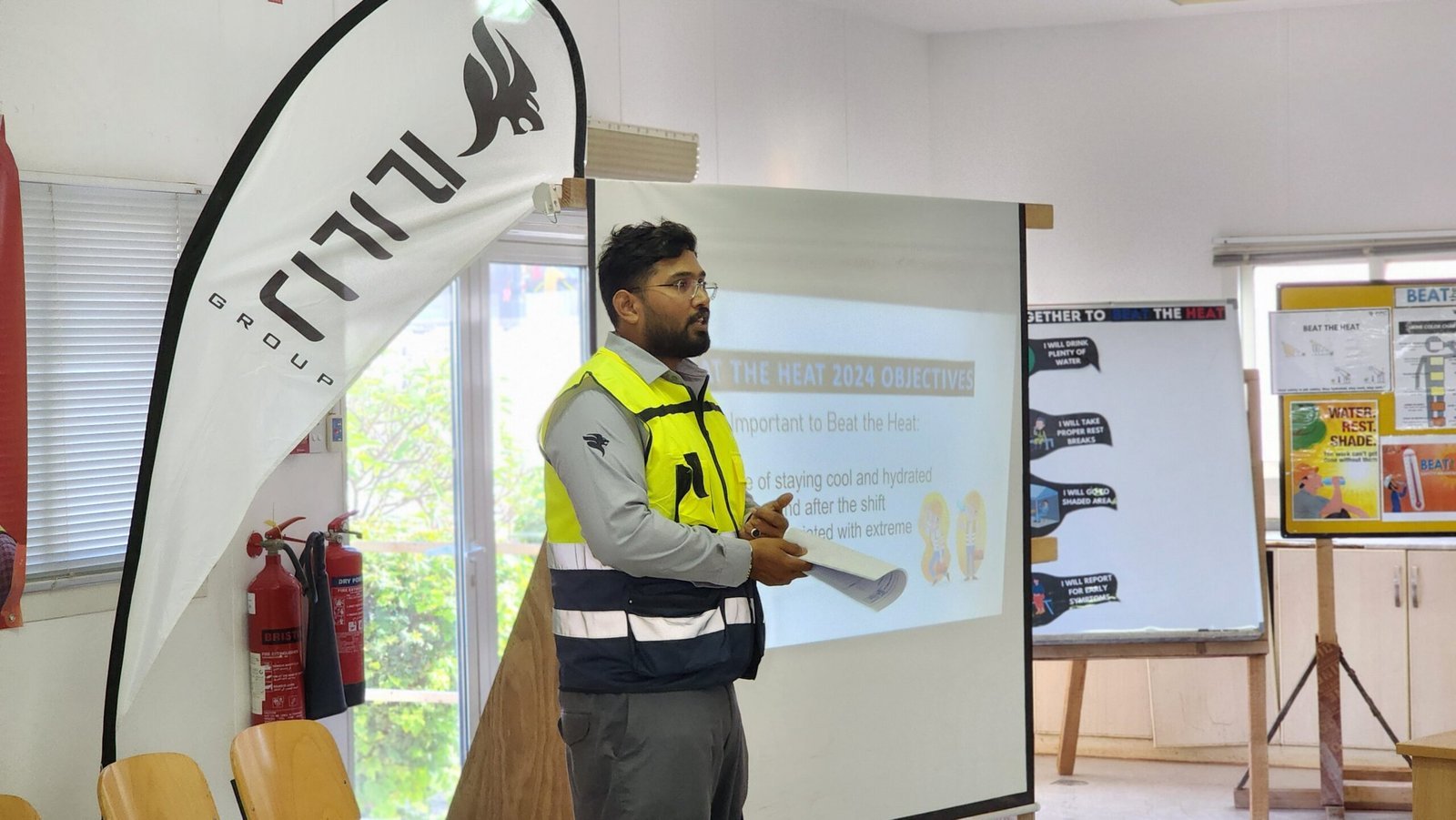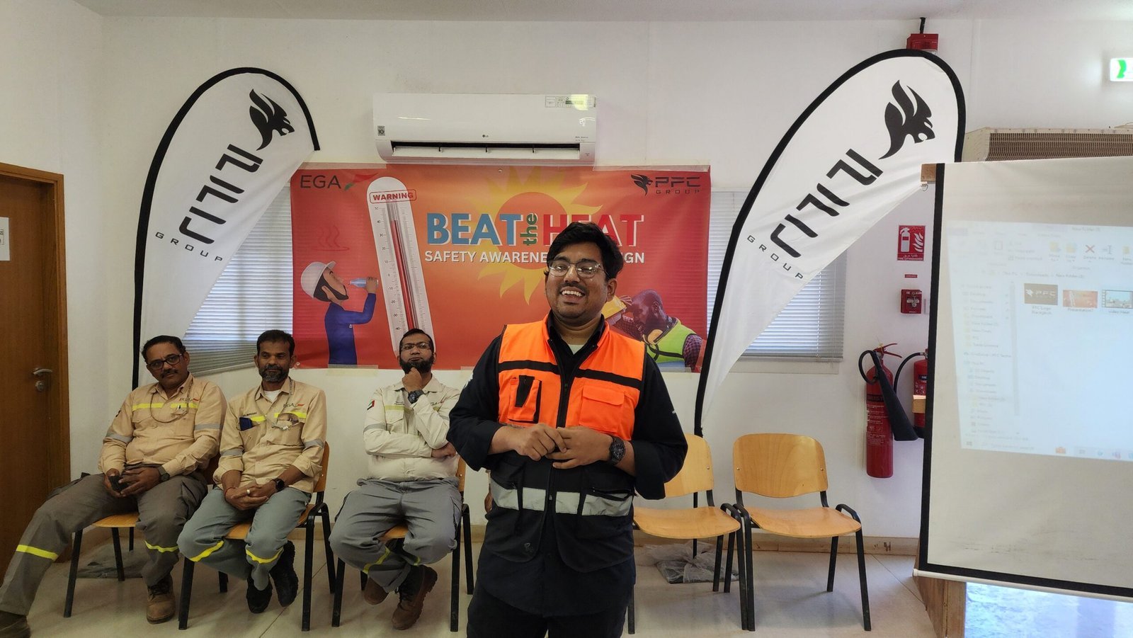 PFC Group successfully conducted the u201cBEAT THE HEATu201d Safety Awareness Campaign for its employees at the Al Taweelah site on 06-06-2024. The initiative focused on educating the workforce about heat stress prevention, hydration, and best practices for working safely under extreme summer conditions. The campaign included toolbox talks, distribution of oral rehydration salts (ORS), shaded rest areas, and awareness materials to reinforce the importance of heat illness prevention. The event highlighted PFC Groupu2019s commitment to employee health, safety, and well-being during the peak summer season.