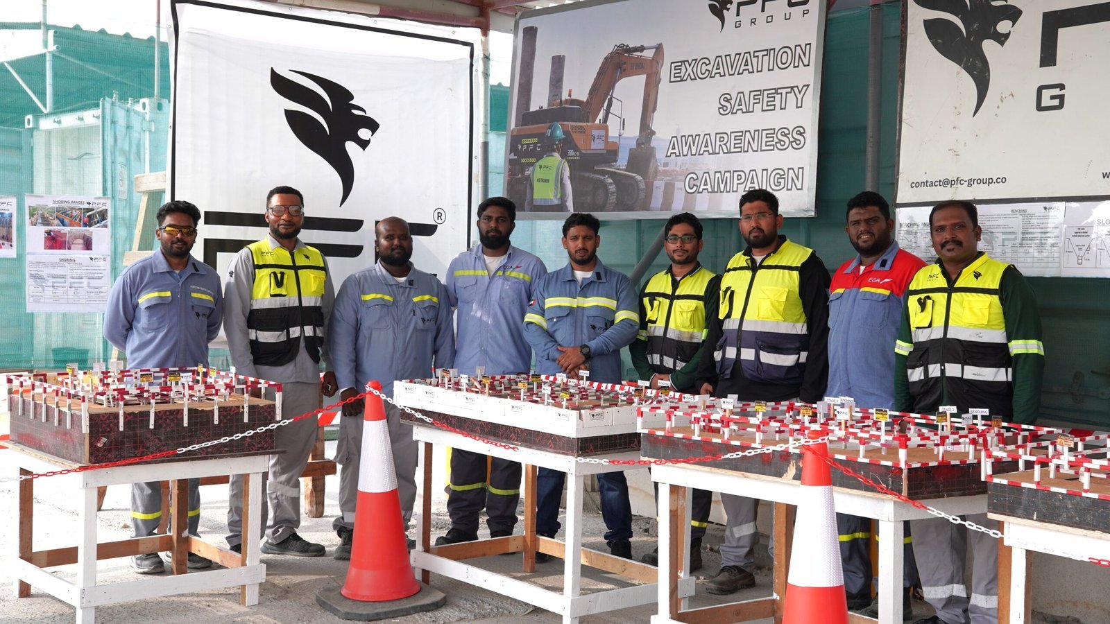 The PFC Group HSE Department successfully conducted a one-week Excavation Safety Awareness Campaign aimed at promoting safe excavation practices and strengthening the overall safety culture at the workplace. The campaign was inaugurated by Mr. Saquir and Mr. Aalam, marking the official opening ceremony. Throughout the week, various awareness and training activities were organized, including Toolbox Talk (TBT) sessions, interactive training with PowerPoint presentations, and open discussions with the workforce to enhance their knowledge of excavation safety. A drawing competition was also held to encourage employees to creatively express safety concepts. On the final day, the closing ceremony was conducted in the presence of client representatives, who shared valuable insights on excavation safety. The event concluded with awards presented to the Best Supervisor and Best Safety Support, along with prize distribution for the winners of the drawing competition. The campaign successfully fostered awareness, engagement, and a strong commitment to safe excavation practices among all participants.