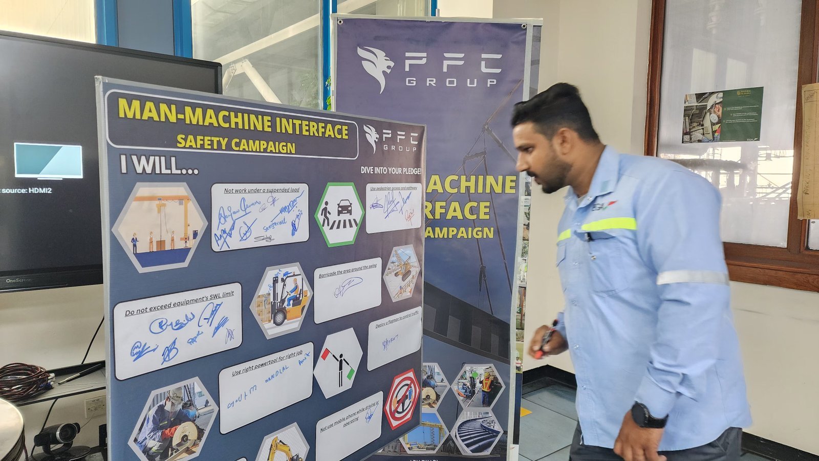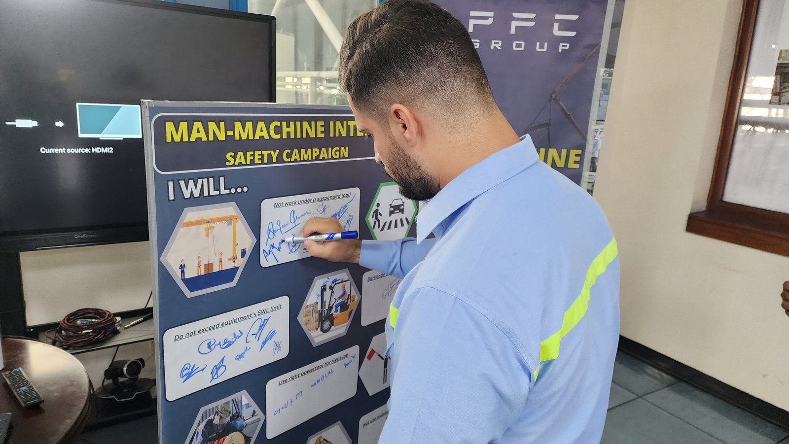 On 31-01-2024, PFC Group successfully conducted the u201cMAN MACHINE INTERFACEu201d Safety Campaign for its employees at the Jebel Ali site, focusing on enhancing awareness about the safe interaction between workers and machinery. The campaign addressed key topics such as safe operating zones, communication protocols, and the importance of alertness around moving equipment. Practical demonstrations and safety talks were conducted to emphasize the potential risks and preventive measures associated with man-machine interface. This initiative reflected PFC Groupu2019s proactive approach to minimizing workplace incidents and fostering a safety-first culture across all operational levels.