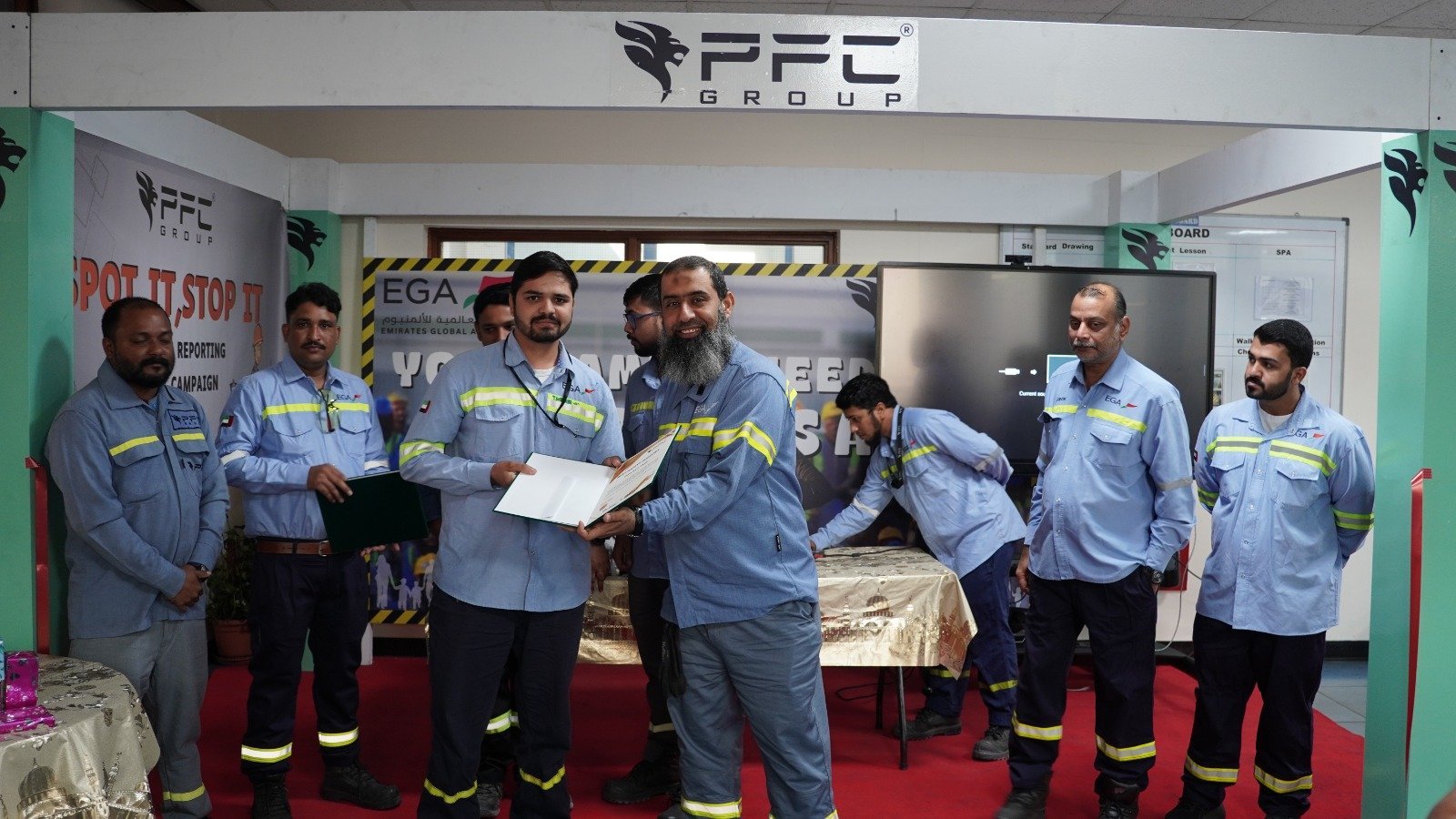 PFC Groupu2019s HSE Department successfully carried out the u201cSpot It, Stop Itu201d Near-Miss Reporting Safety Campaign for the Carbon Area workforce, aimed at strengthening awareness on identifying hazards and promoting proactive safety behavior. The campaign began with certificate distribution for employees who had previously taken part in safety initiatives, followed by an informative awareness session led by EGA representatives and interactive near-miss reporting games, along with a raffle draw to boost engagement. On the second day, employees conducted safety walkabouts across the site, inspecting work areas, identifying potential hazards, and observing safe practices to reinforce learning through real-time exposure. The final day featured internal training sessions on proper near-miss reporting procedures, along with feedback sharing and discussions that encouraged teamwork and strengthened the companyu2019s collaborative safety culture, reaffirming PFC Groupu2019s commitment to maintaining a safe and vigilant work environment.