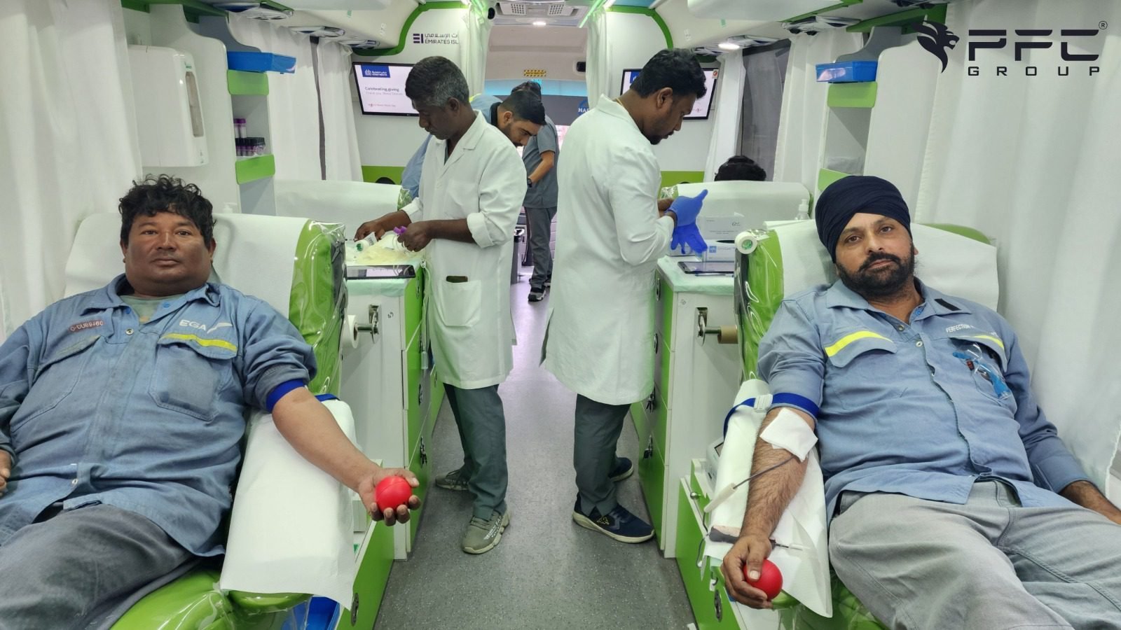 PFC Group, in partnership with the Dubai Health Authority, successfully conducted a blood donation campaign at Dubai South Gate, emphasizing the importance of saving lives through voluntary blood donation. The initiative saw an overwhelming response, with over 50 employees from PFC Group stepping forward to contribute. Additionally, employees from renowned companies such as Dulsco, Seetle, and Dubai Euro actively participated in the drive, showcasing a strong commitment to community welfare.