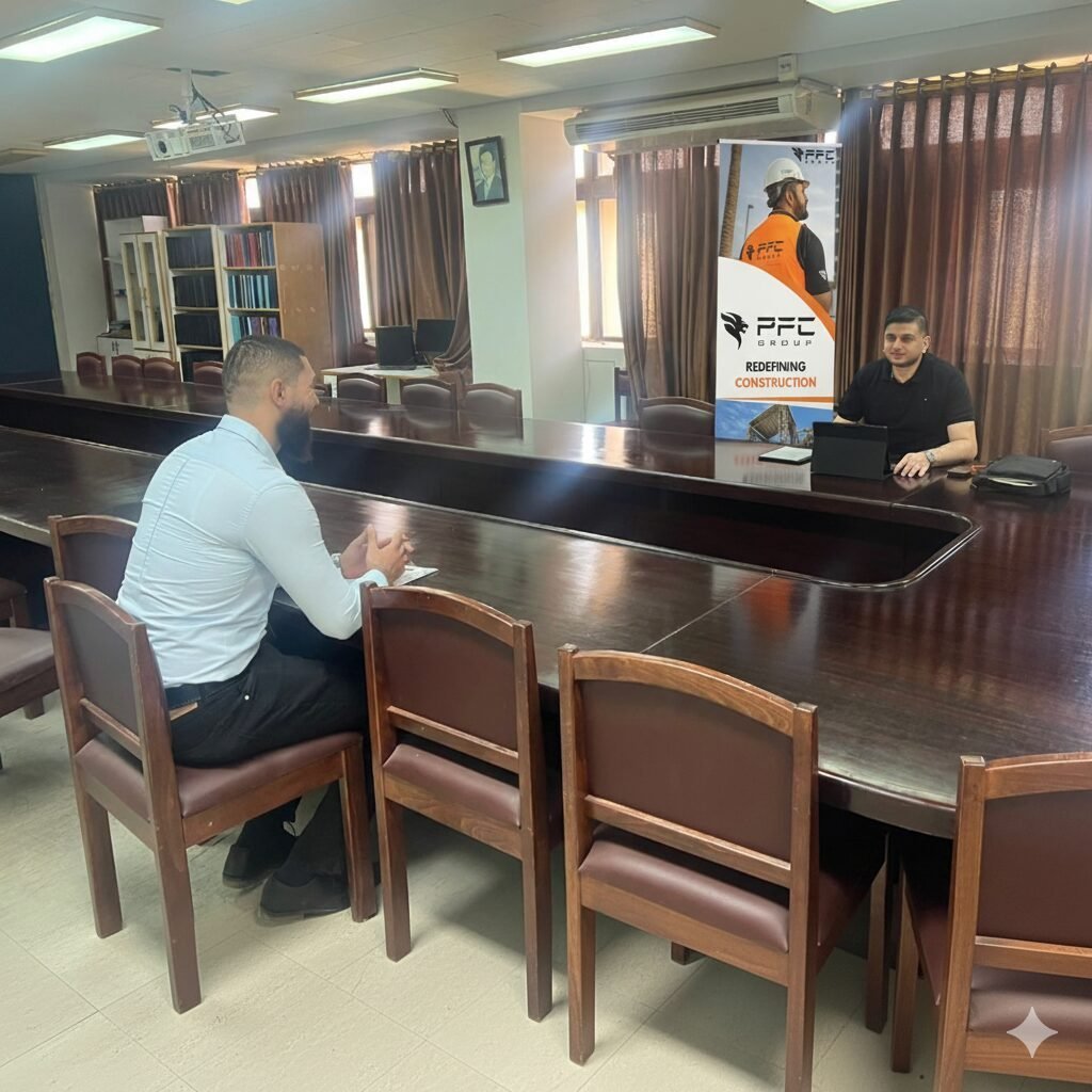 Following the meeting, job interviews were conducted for shortlisted Civil Engineering graduates as part of PFCu2019s university recruitment initiative. This visit marks another step in PFCu2019s ongoing commitment to empowering young engineers and bridging education with real-world practice.