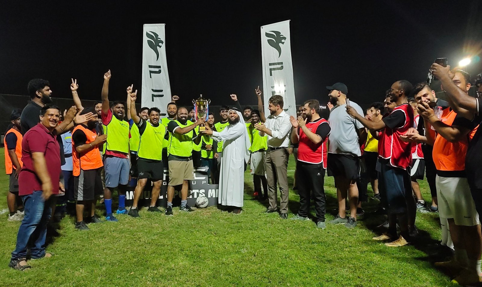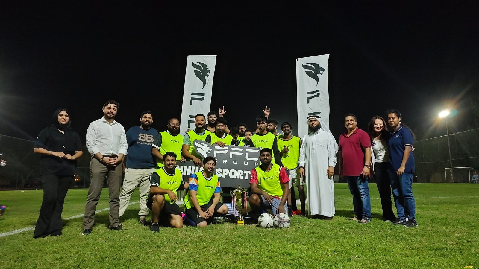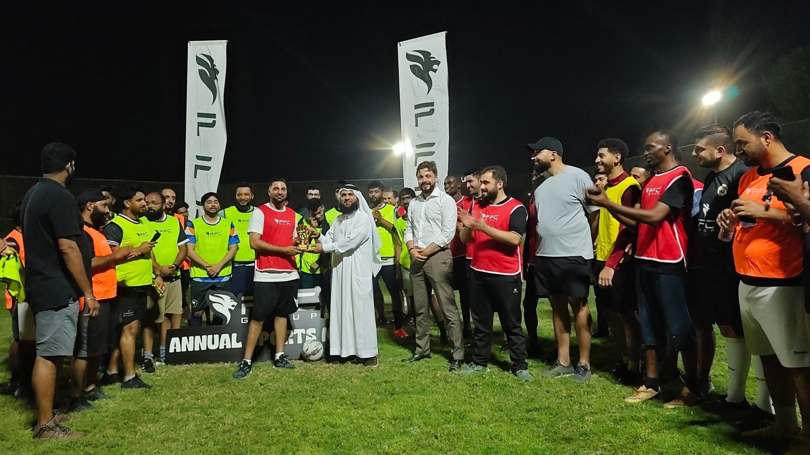 The CSR Team of PFC Group successfully organized an Internal Football Tournament at the Soccer Ground, DIP 1, marking both a CSR initiative and the official start of the Annual Sports Meet 2025, where four teams — Safety, Engineering, Administration, and Store/Logistics — competed with passion and sportsmanship. The event was inaugurated by Mr. Nadim Salameh, Administration Director of PFC Group, who inspired the players with motivating words and a ceremonial first kick, while the matches reflected teamwork, discipline, and camaraderie. After an exciting round of games, the Safety team, led by Captain Mr. Sreerag Soman, triumphed over Store/Logistics in the final with a 2–0 victory, lifting the cup and reinforcing the spirit of unity. Chief Guest Mr. Omar Jelani, Senior Safety Superintendent & Member of Mental Wellbeing, EGA, presented the trophy and emphasized the importance of sports for both physical and mental well-being, while special awards went to Mr. Saeed, Cost Controller, as Best Player, and Mr. Faisal, Logistics Officer, as Best Goalkeeper. The management reiterated that such sporting events are vital not only for competition but also for stress relief, stronger workplace bonds, and a healthier lifestyle, underlining PFC Group’s commitment to employee wellness and positivity. With enthusiastic participation, energetic performances, and shared celebrations, the tournament became a memorable opening to a season of sports, wellness, and togetherness.